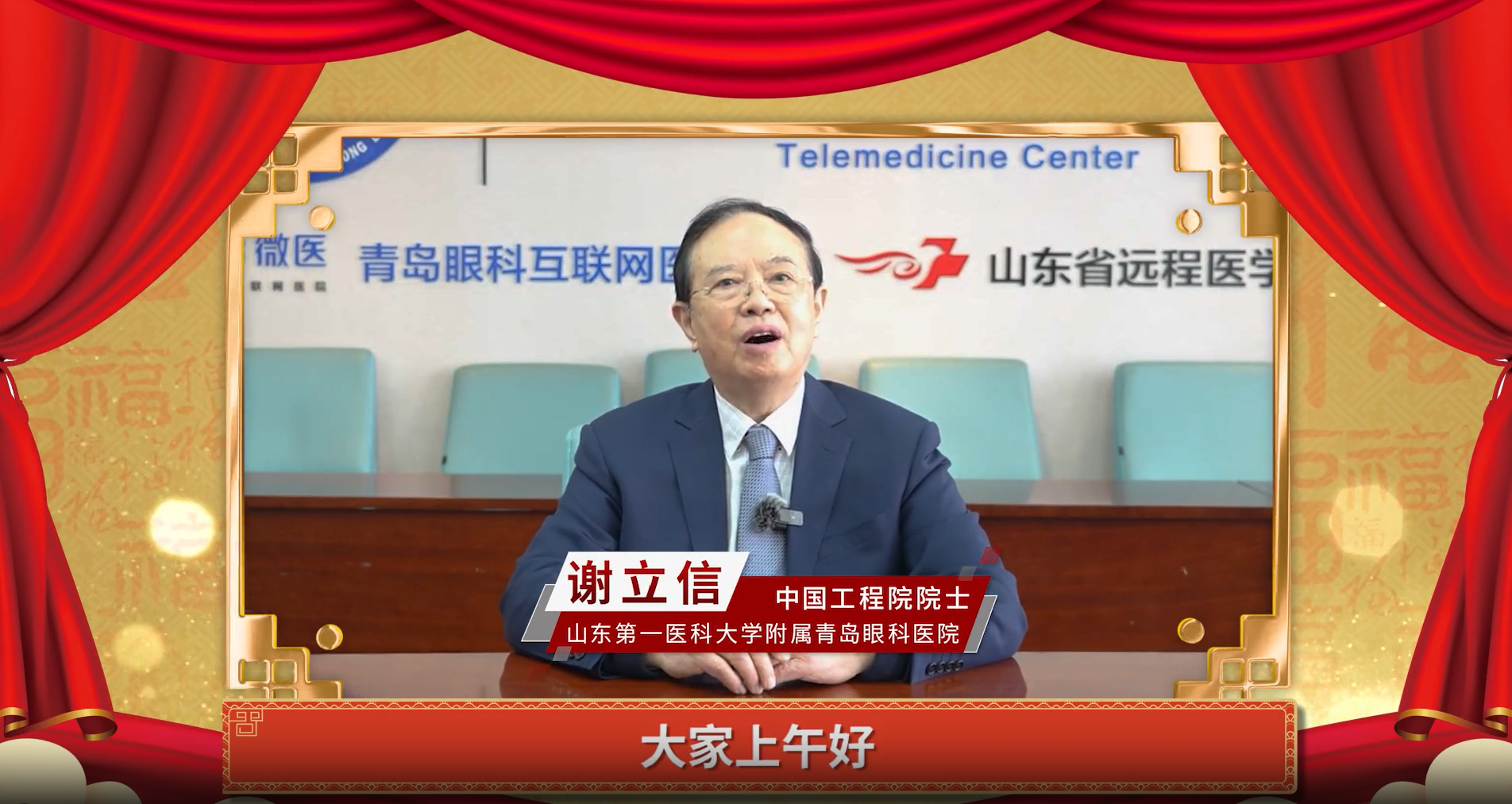 山东第一医科大学附属青岛眼科医院院长谢立信院士发来视频贺词