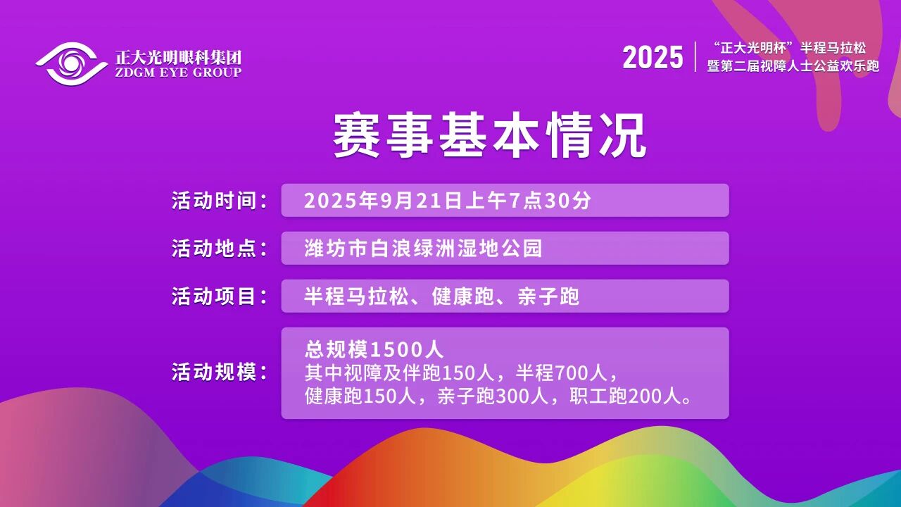 光明之爱·更好潍坊2025“正大光明杯”半程马拉松暨第二届视障人士马拉松欢乐跑定档九月二十一日