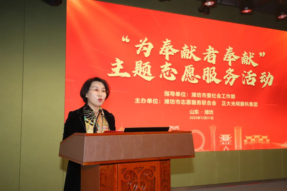 志愿服务暖人心,文明之花绽鸢都。12月31日下午,由潍坊市委社会工作部指导,潍坊市志愿服务联合会与正大光明眼科集团联合主办的“为奉献者奉献”主题志愿服务关爱行动,在潍坊眼科医院三楼学术报告厅温情启幕。活动以“送文化、送健康”为核心主线,向优秀志愿者代表、志愿服务工作者及优秀项目负责人致以崇高敬意与贴心关爱,进一步厚植全市志愿服务氛围,为“更好潍坊”建设注入暖心志愿暖流。