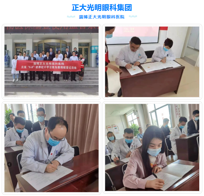5月8日,正大光明眼科集团总院及各分院在当地红十字会和各级新闻媒体的见证下,在集团院领导和分院院长的带动下,324名正大光明眼科集团医护人员及家属集体签署了眼角膜捐献志愿书。潍坊眼科医院眼库和烟台正大光明眼科医院眼库揭牌仪式于同日举行。
