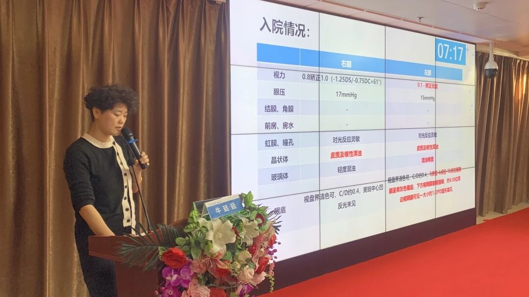 潍坊眼科医院的高佳慧分享了《一例急性视网膜坏死综合征患者的个案护理》,高密正大光明眼科医院的王小萌带来了题为《一例孔源性视网膜脱离患者的个案护理》的演讲。