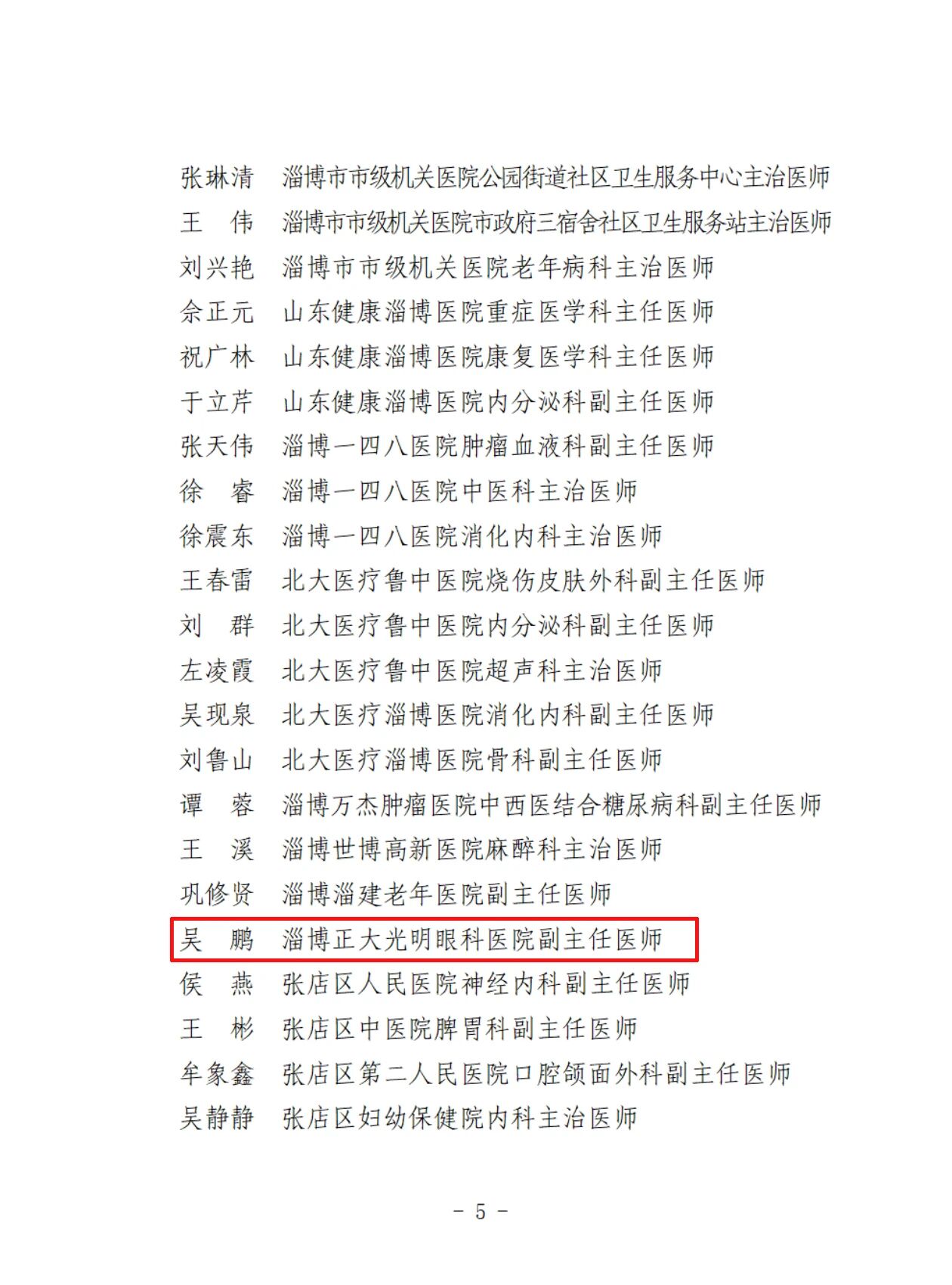 喜报!热烈祝贺淄博正大光明眼科医院吴鹏院长获市卫健委通报表扬!