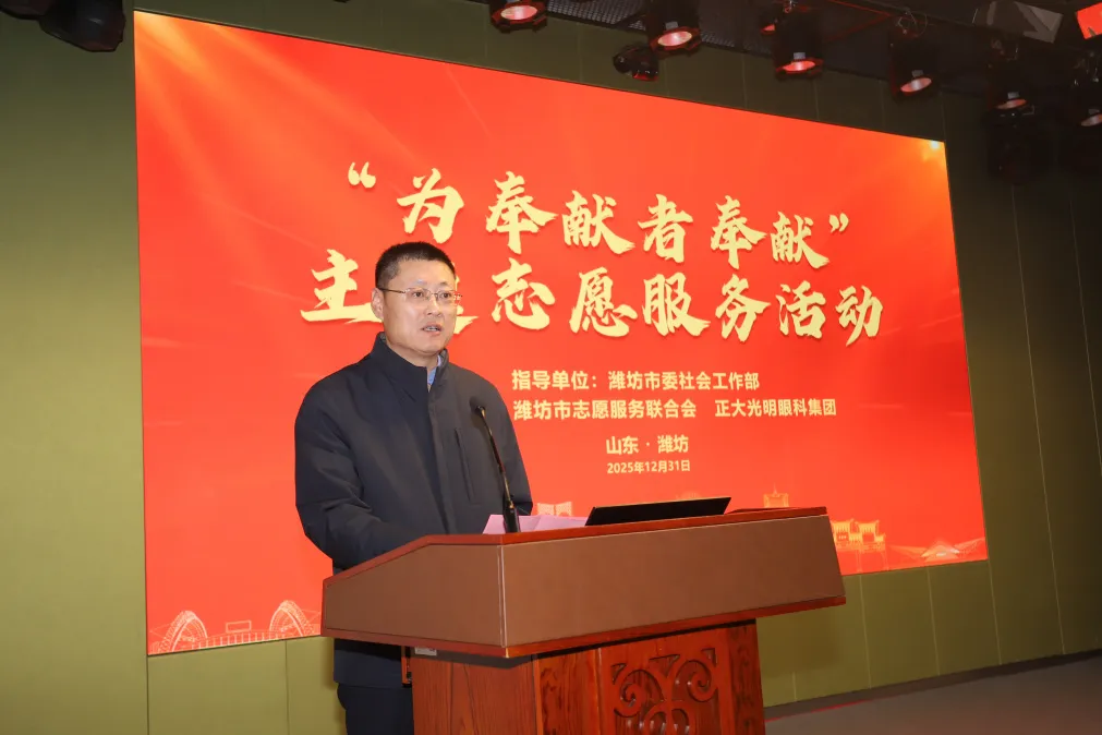 志愿服务暖人心,文明之花绽鸢都。12月31日下午,由潍坊市委社会工作部指导,潍坊市志愿服务联合会与正大光明眼科集团联合主办的“为奉献者奉献”主题志愿服务关爱行动,在潍坊眼科医院三楼学术报告厅温情启幕。活动以“送文化、送健康”为核心主线,向优秀志愿者代表、志愿服务工作者及优秀项目负责人致以崇高敬意与贴心关爱,进一步厚植全市志愿服务氛围,为“更好潍坊”建设注入暖心志愿暖流。