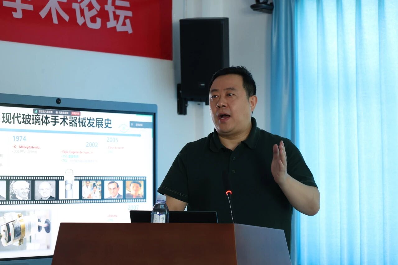 黄旭东教授以《浅谈玻璃体视网膜手术的基本原则》拉开学术序幕,奠定了理论基础;王洪格教授分享了《PDR术后出血的原因及预防》,聚焦糖尿病视网膜病变的处理要点;杨庆松教授带来《黄斑前膜的研究进展》,介绍了该领域的最新认识与术式优化;高磊教授以《从个体患者的救治到医学知识的升华与传播》为题,提出了医学知识转化与临床人文思维的深度融合;张杰教授通过《所见非所限》一讲,结合实践经验,展现了玻切术中对复杂病变的精准判断。